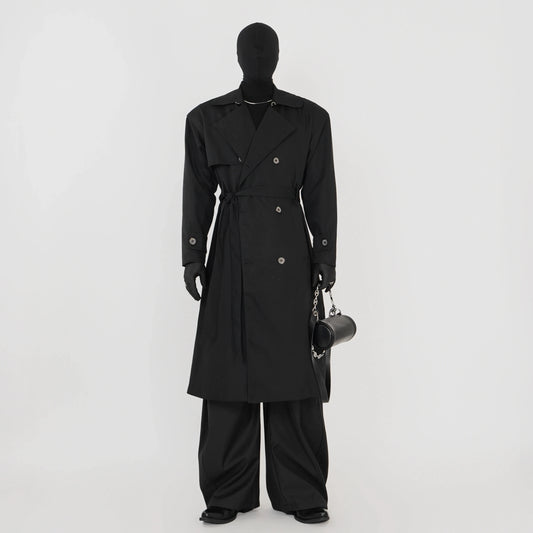 Shoulder-Pad Waist-Fitted Thick Long Trench Coat WN21737
