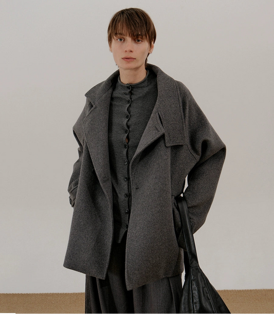 Large Lapel Waist Fit Wide Shoulder Coat WN20852