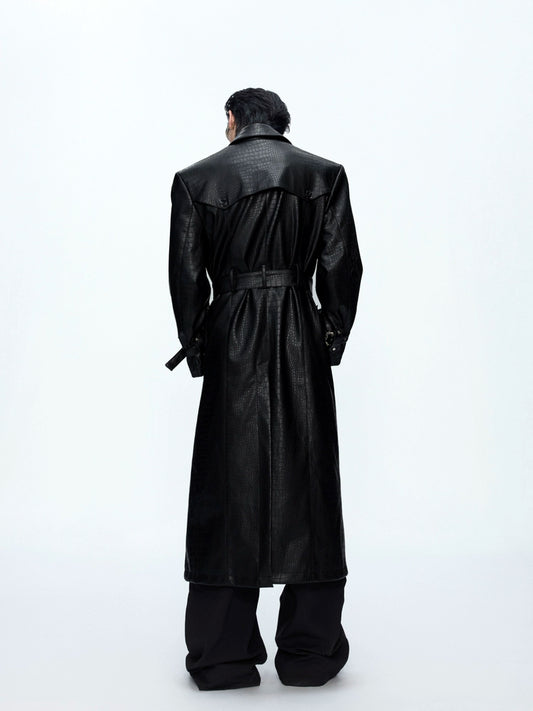 Deconstruction Crocodile-Pattern Metal Buckle Long Coat WN21230