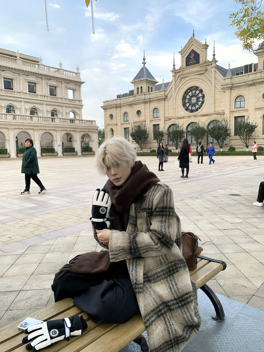 Plaid Oversize Design Long Coat & Plaid Scarf WN17850
