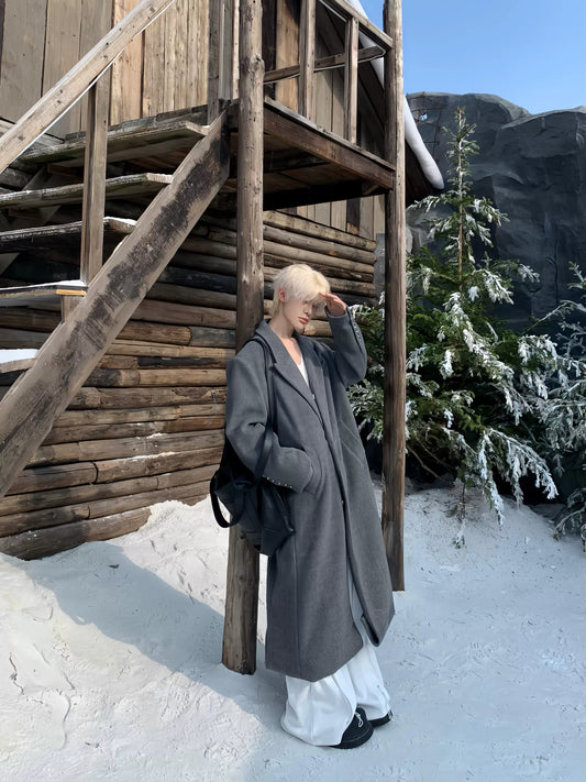 Front-Buttoned Shoulder-Pad Oversize Coat WN19804