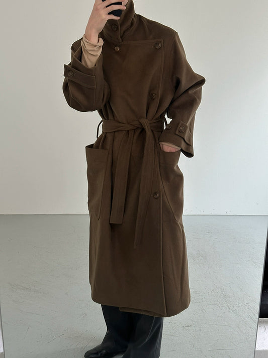 Wool Gem Shoulder-Pad Long Double-Breasted Coat WN21306