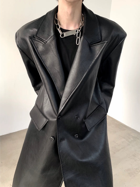 Shoulder Pad Oversize PU Leather Coat WN9170