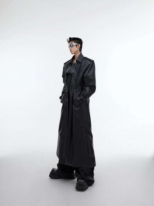 Shoulder Pad Over-Knee PU Leather Coat WN9324