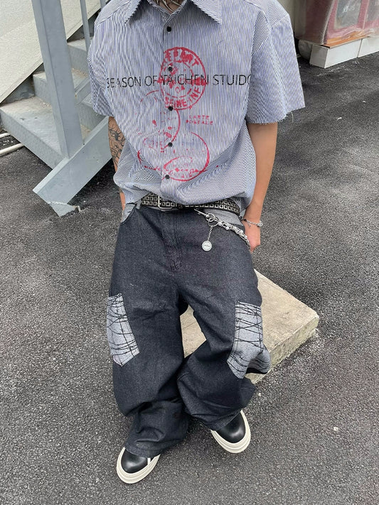 Graphic Art Embroidery Wide Leg Denim Jeans WN18804
