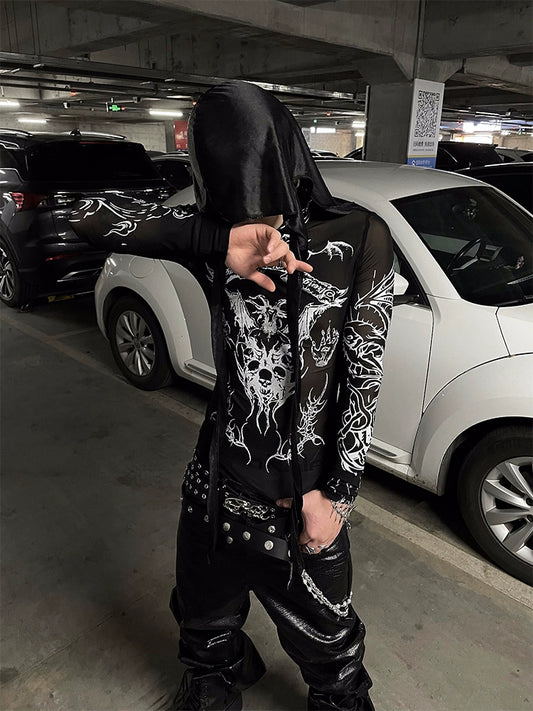 Mesh See-Through High-Neck Long Sleeve T-Shirt WN16309
