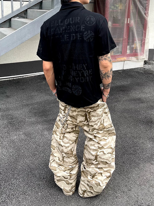 Multi-Pocket Camouflage Wide Leg Cargo Pants WN18830
