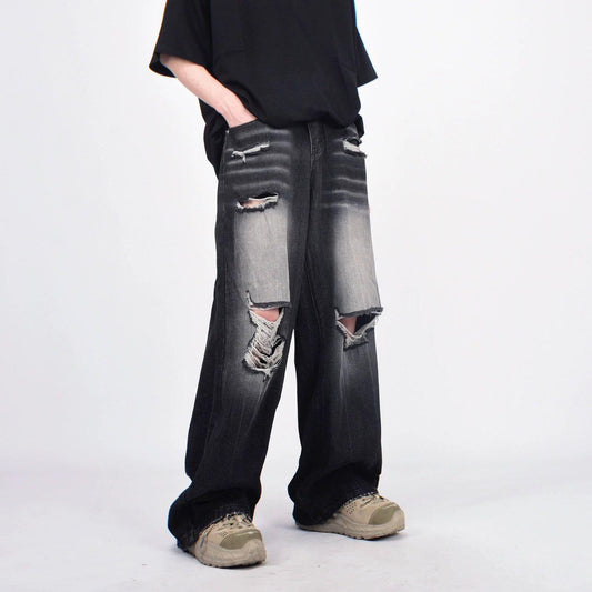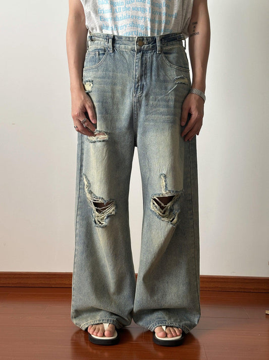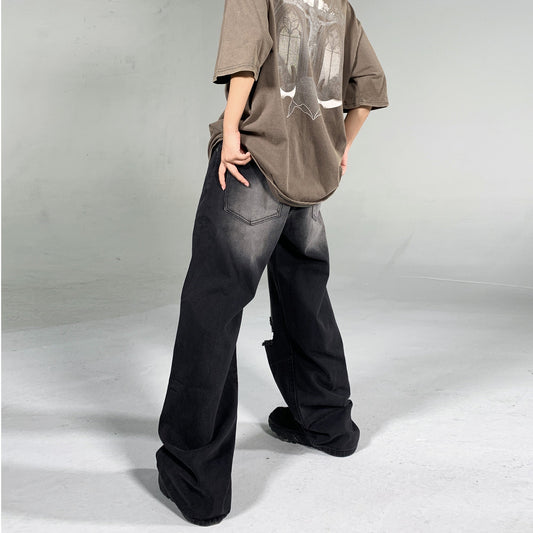 Ripped Hole Washed Wide-leg Straight Jeans WN1552