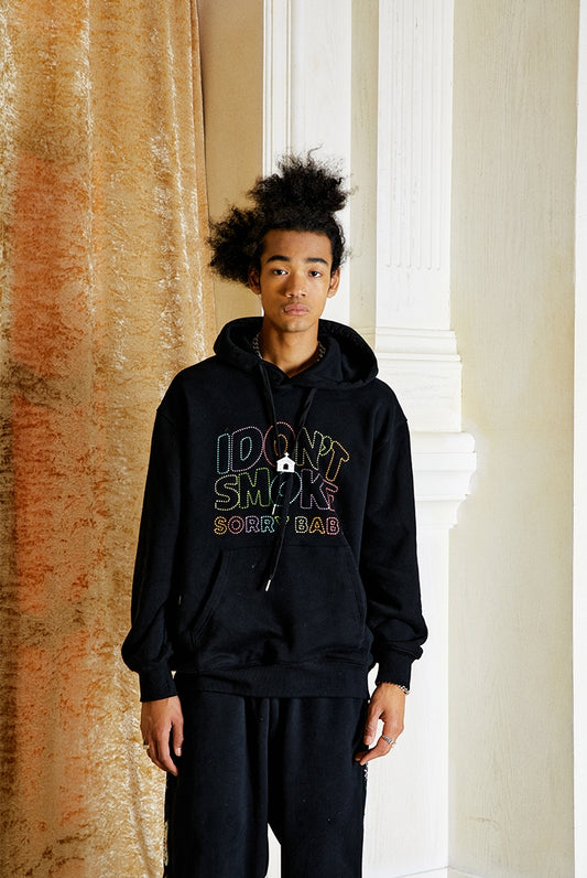 Rhinestone Logo Oversize Pullover Hoodie WN10117