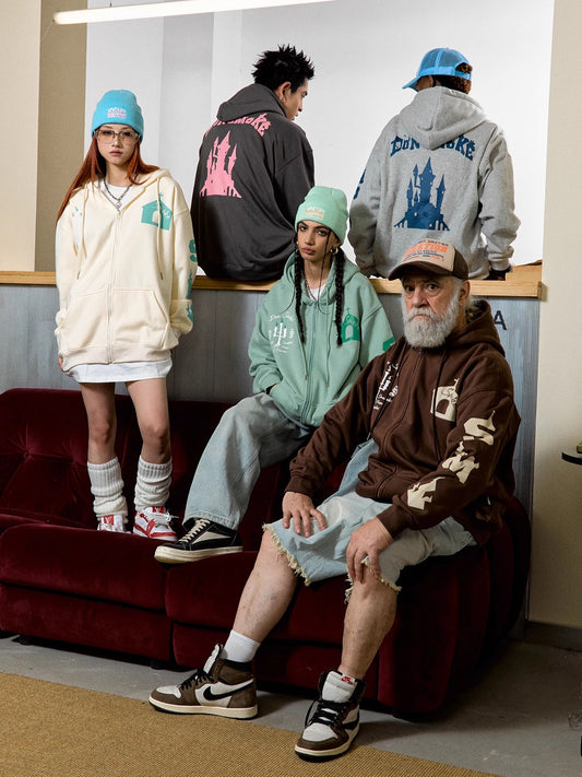 Castle Print Fleece Zipper Hoodie WN10086