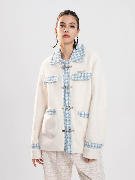 Herringbone Plaid Embroidery Oversize Jacket WN10078