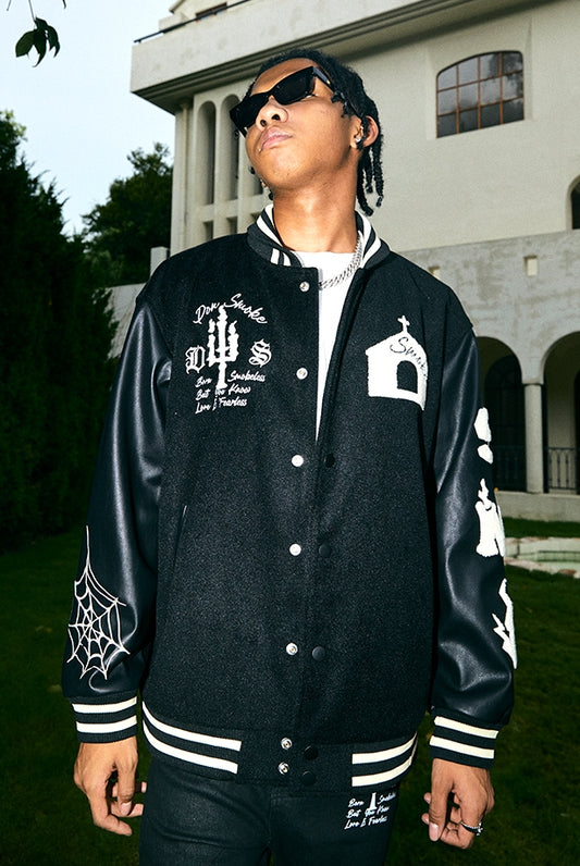Embroidery Castle Design Baseball Jacket WN10080