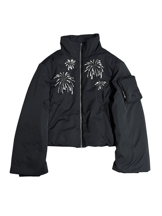Hooded Embroidered Fake Fur Padded Jacket WN22201