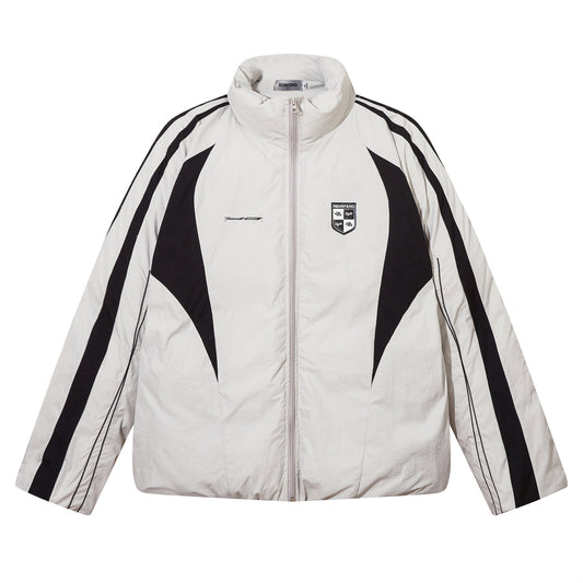 Stripe Webbing Patchwork High-Neck Puffer Jacket WN11559