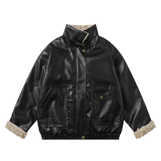 Sherpa Panel PU Leather Padded Jacket WN11546