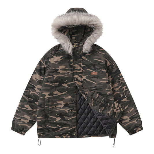 Camouflage Fur Collar Hooded Padded Jacket WN11555