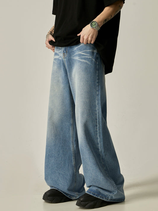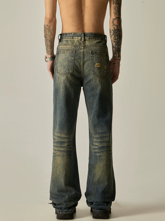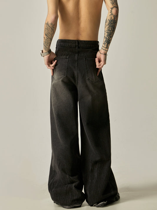 Damaged Wide-Leg Straight Denim Jeans WN7755