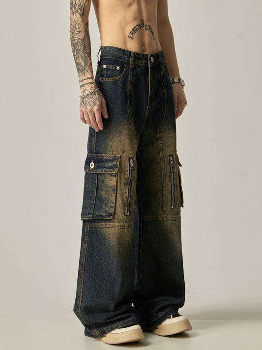 Wide-leg Straight Cargo Denim Jeans WN6247