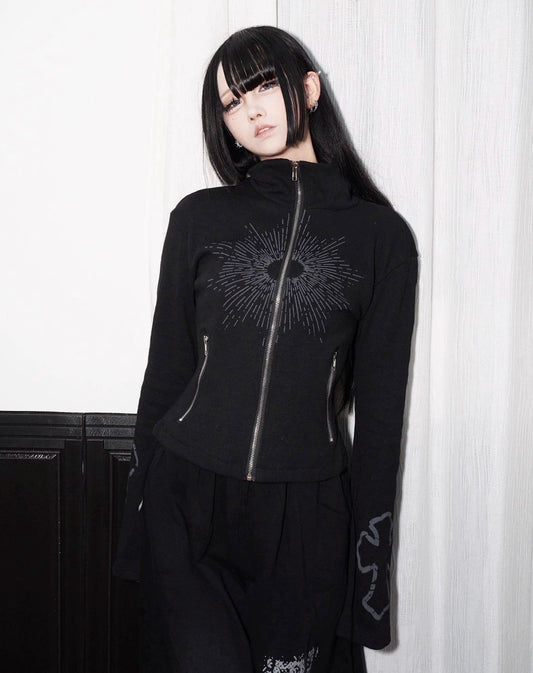 Four-Bar Spray Damage Stand Neck Zopper Jacket & Wide Leg Pants Set WN21811
