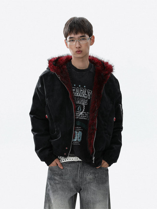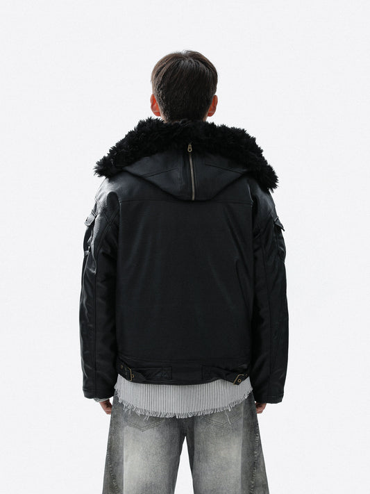 Fake Fur Patchwork Hooded Short Jacket WN21803