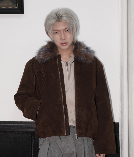 Fake Fur Patchwork Damage Short Denim Jacket WN21822