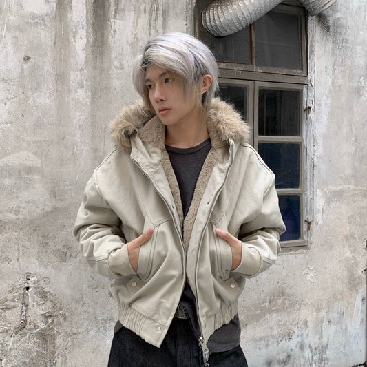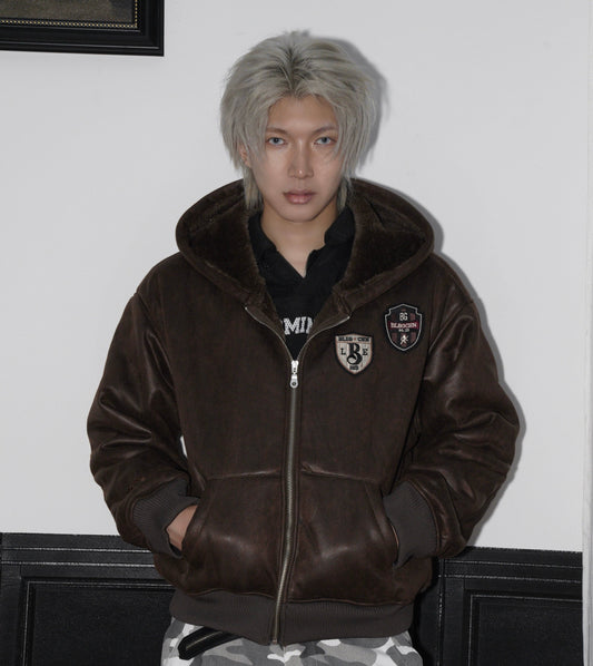 Fur Plush Hooded Suede Zipper Jacket WN22176