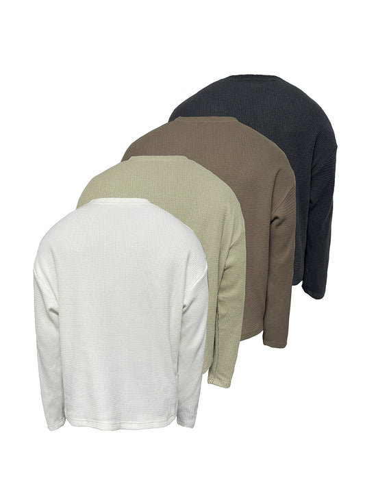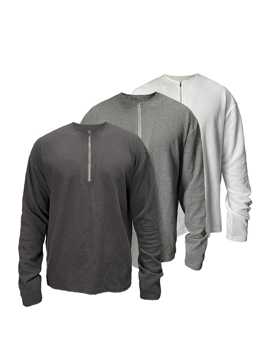 Waffle Plan Half Zip Long Sleeve T-shirt WN8593