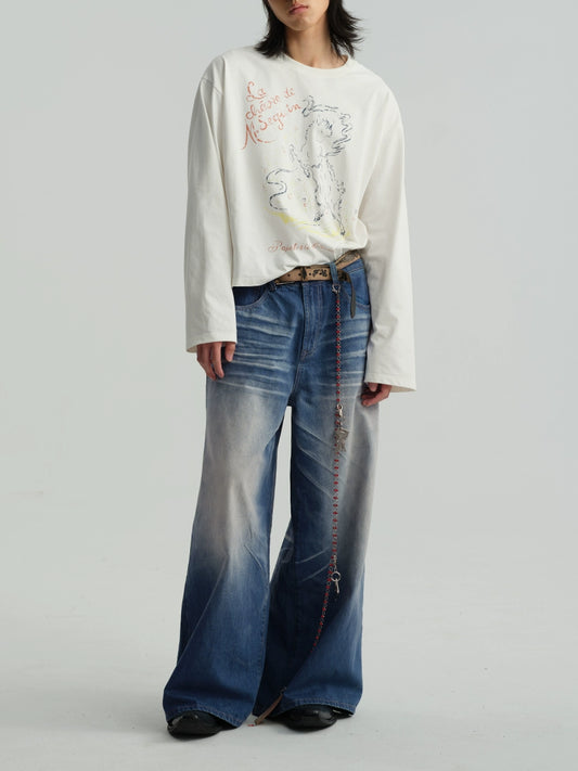 Washed Enamel Wide-Leg Straight Denim Jeans WN8589