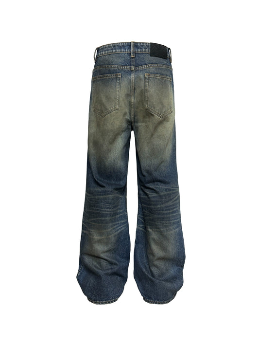 Heavy Water Washable Wide-Leg Straight Denim Jeans WN8590