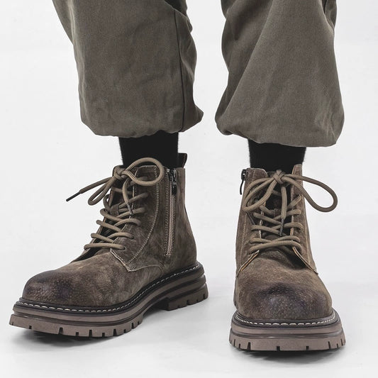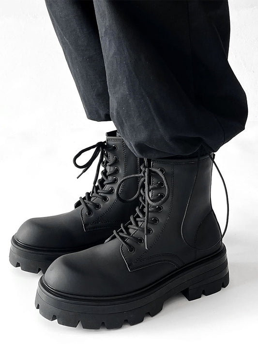 Leather Mid-Top Zipper Design Chunky Sole Boots WN19143