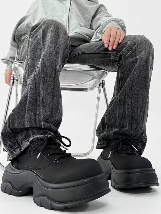 Round Toe Derby Design Damage Denim Shoes WN19151
