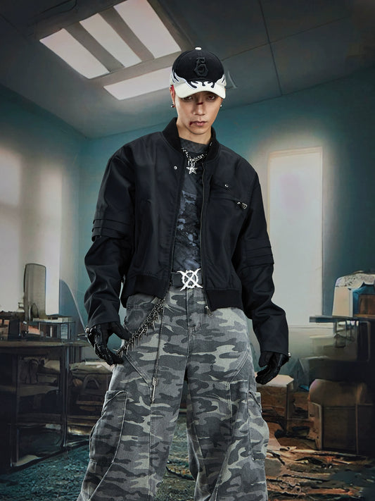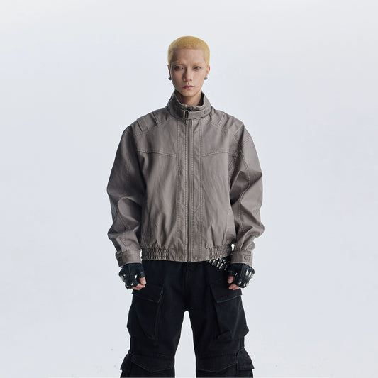 Deconstructed Oversize Zipper Stand Neck Jacket & Wide Leg Pants Setup WN20586