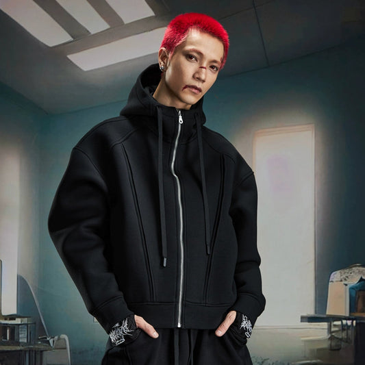 Deconstructed Oversize Zipper Hoodie & Wide Leg Sweatpants Setup WN20582