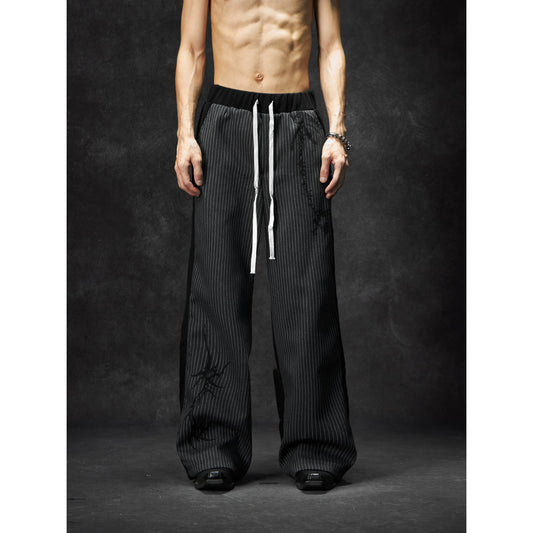 Stripe Patchwork Print Elastic Waist Wide Leg Pants WN18456