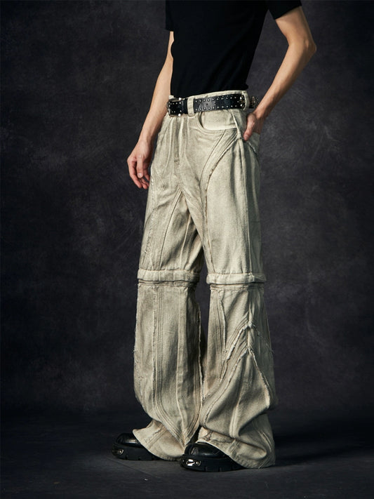 Dyed Raw Hem Detachable Wide Leg Straight Denim Jeans WN18468