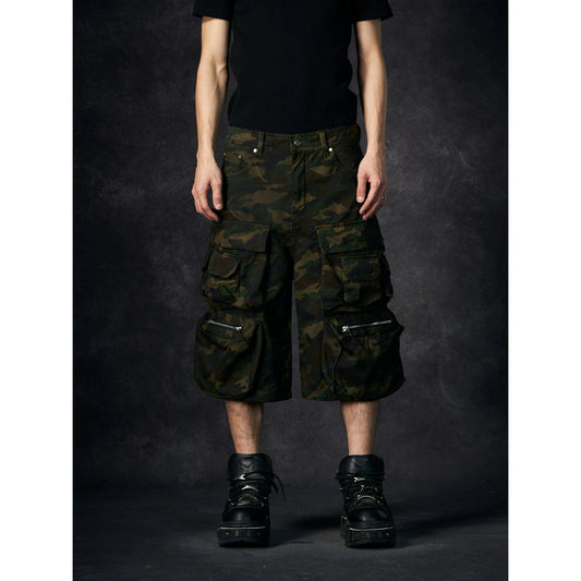 Multi-Pocket Zipper Camouflage Cargo Half Pants WN18435