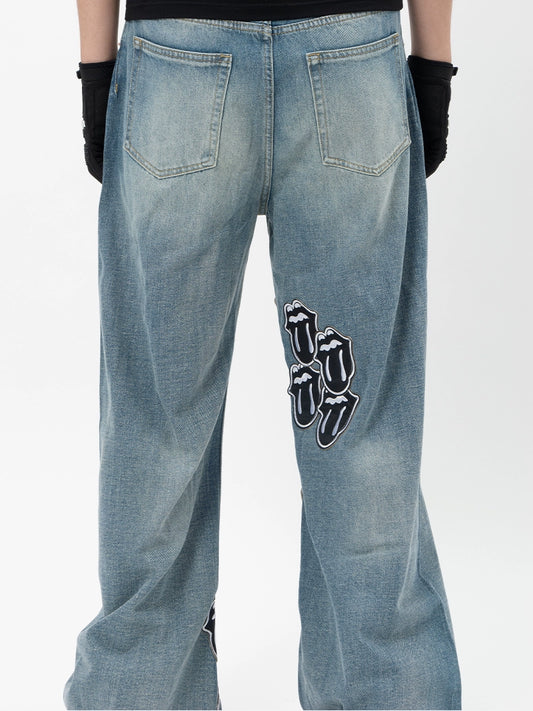 Embroidery Washed Wide-Leg Denim Jeans WN13701
