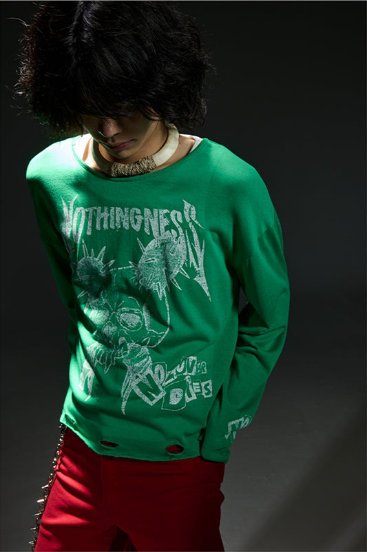 Damage Mesh Long Sleeve T-Shirt WN13734