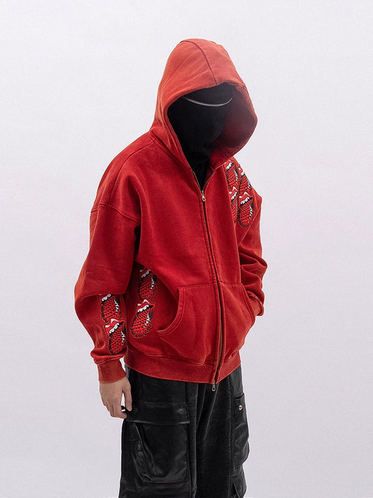 Spiked Tongue Embroidery Zipper Hoodie WN13726