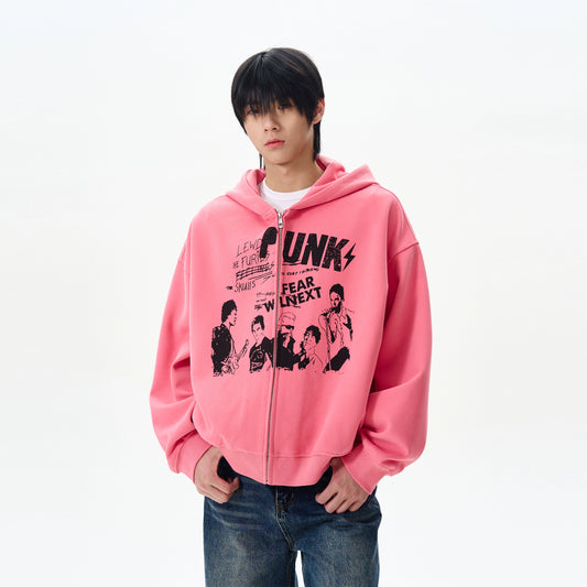Rhinestone Zipper Damage Short Hoodie WN16382