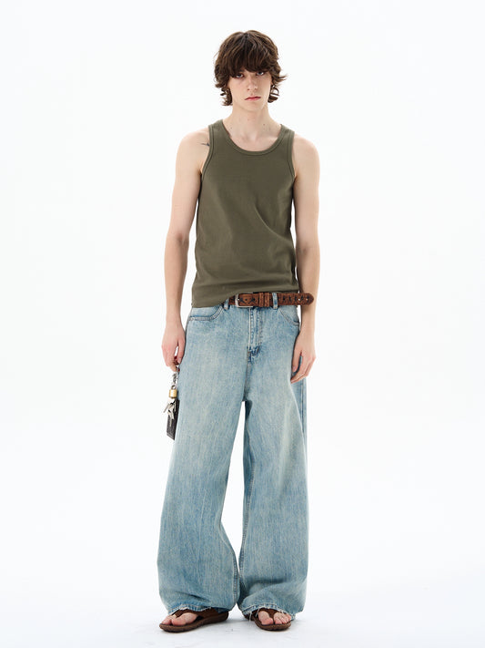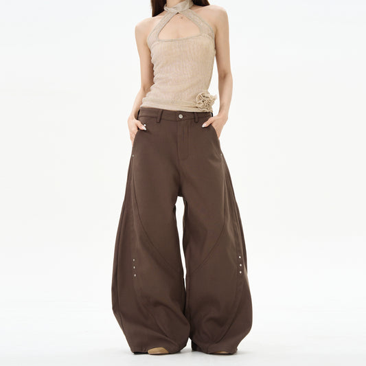 Wide-leg Patchwork Ring Damage Denim Jeans WN18280-K