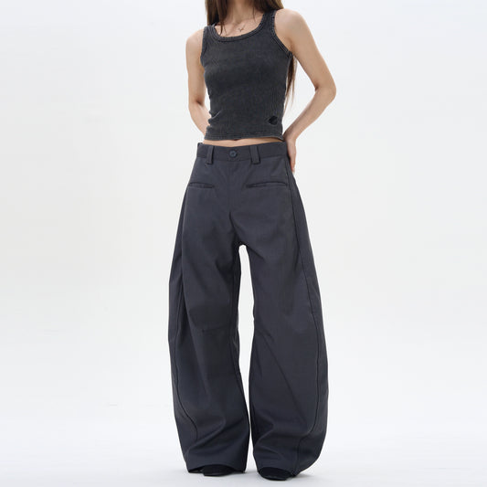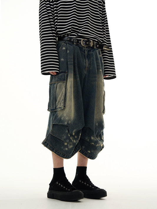 Multi-Pocket Pleats Draped Wide Leg Half Denim Jeans WN16381