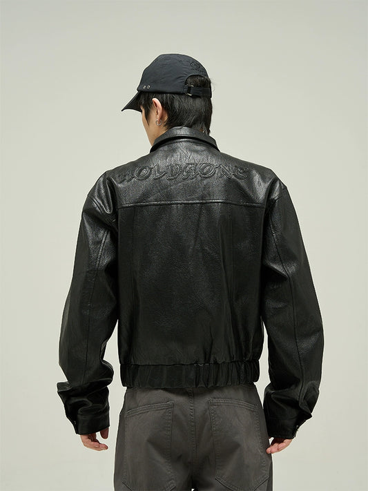 Standing-Collar PU Leather Puffer Jacket WN16380