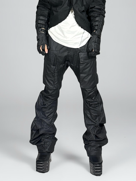 Studs Denim Mix PU Leather Jacket & Flare PU Leather Pants Setup WN21761
