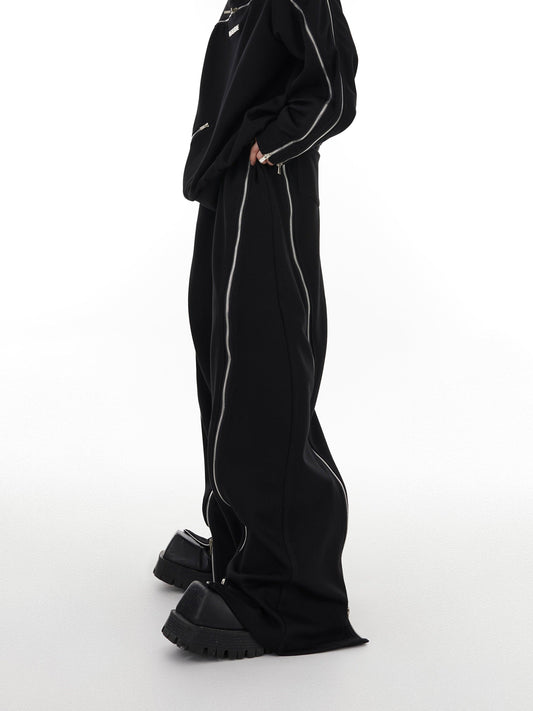 Oversize Zipper Shoulder-pads Sweatshirt & Wide-leg Zipper Sweatpants Setup WN2062