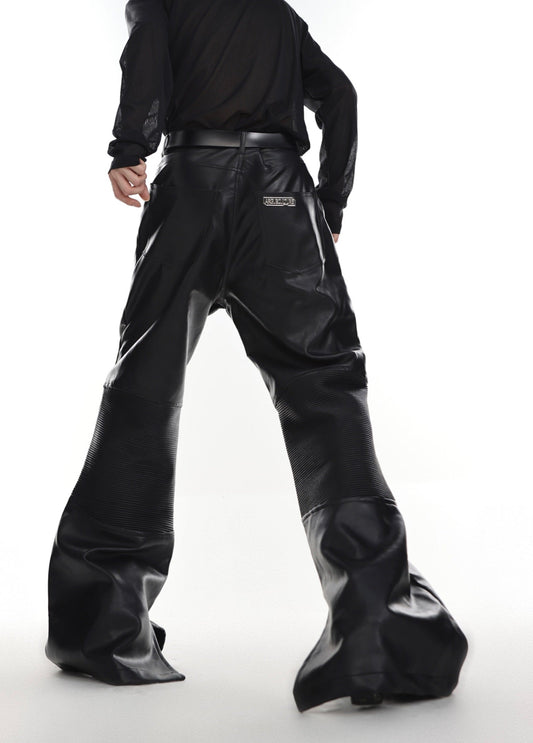 Pleats Flared PU Leather Pants WN2039