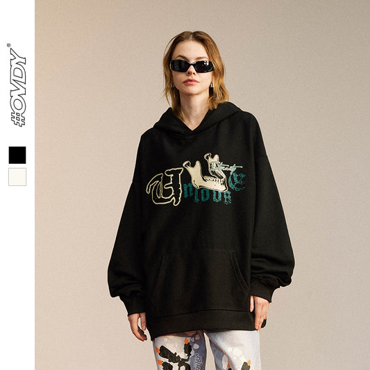 Bone Print Oversize Pullover Hoodie WN12543