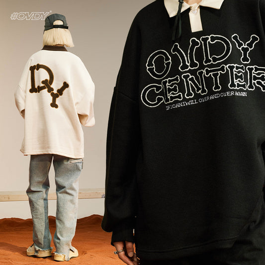 Contrast Waffle Fleece Polo Collar Sweatshirt WN12554
