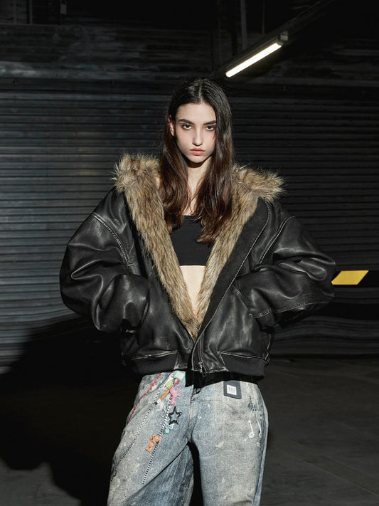 Reversible Fake Fur PU Leahter Oversize Hooded Puffer Jacket WN13266