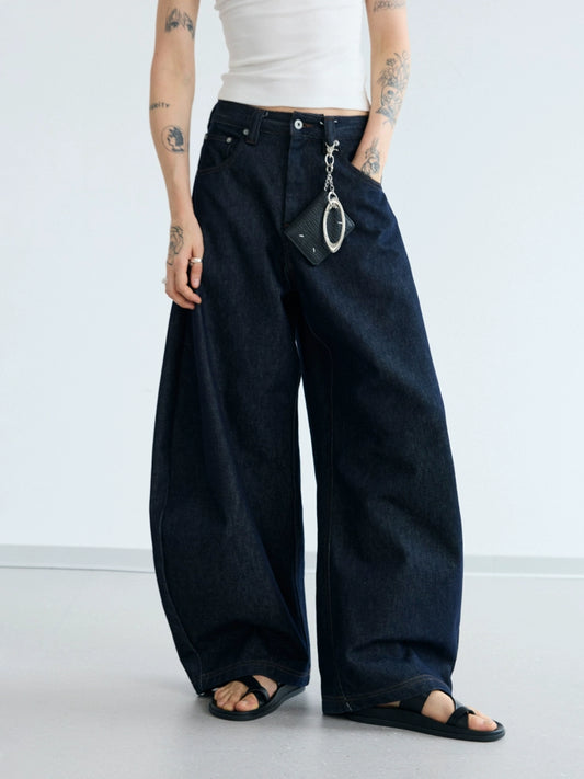 Mud Dye Heavy Wash Wide Leg Curved Hem Denim Jeans WN18178